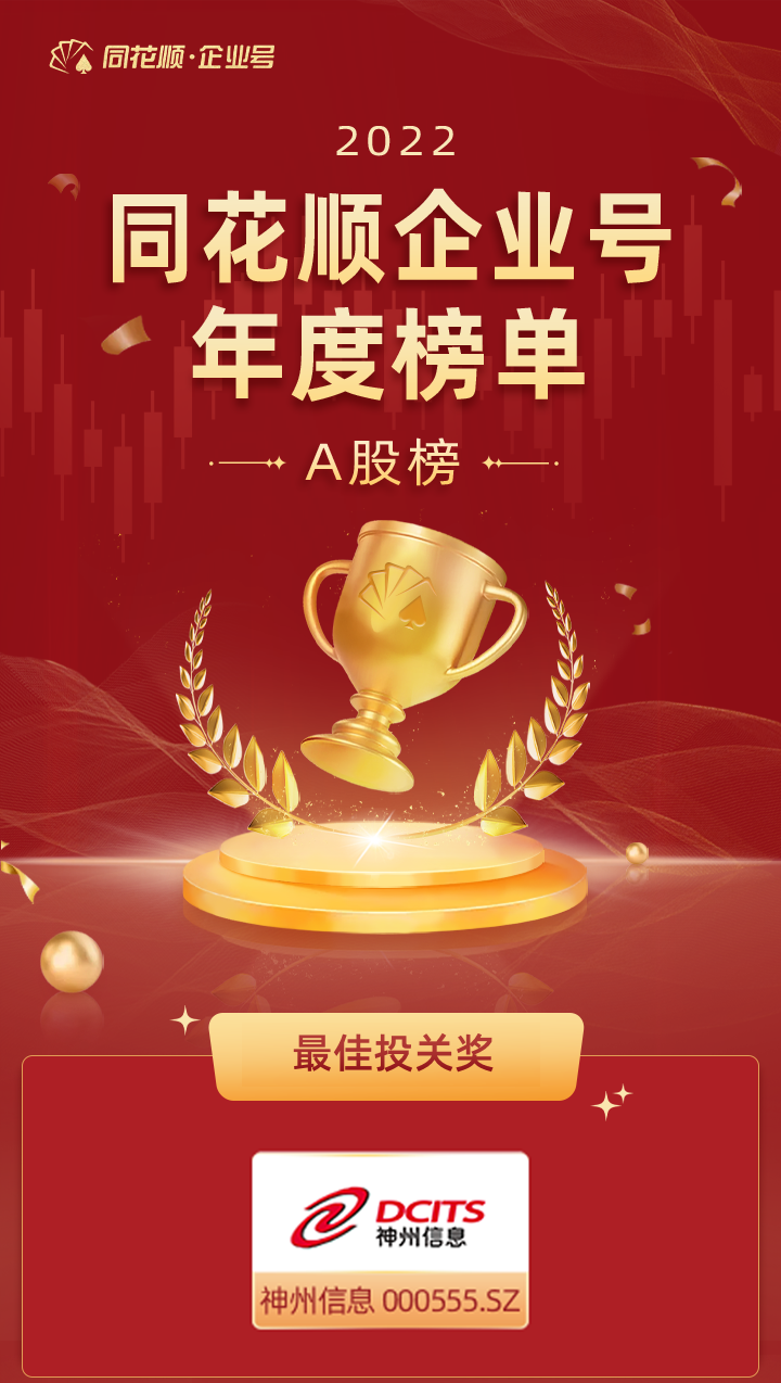 FinTech荣誉 | 神州信息获评2022同花顺企业号“最佳投关奖”